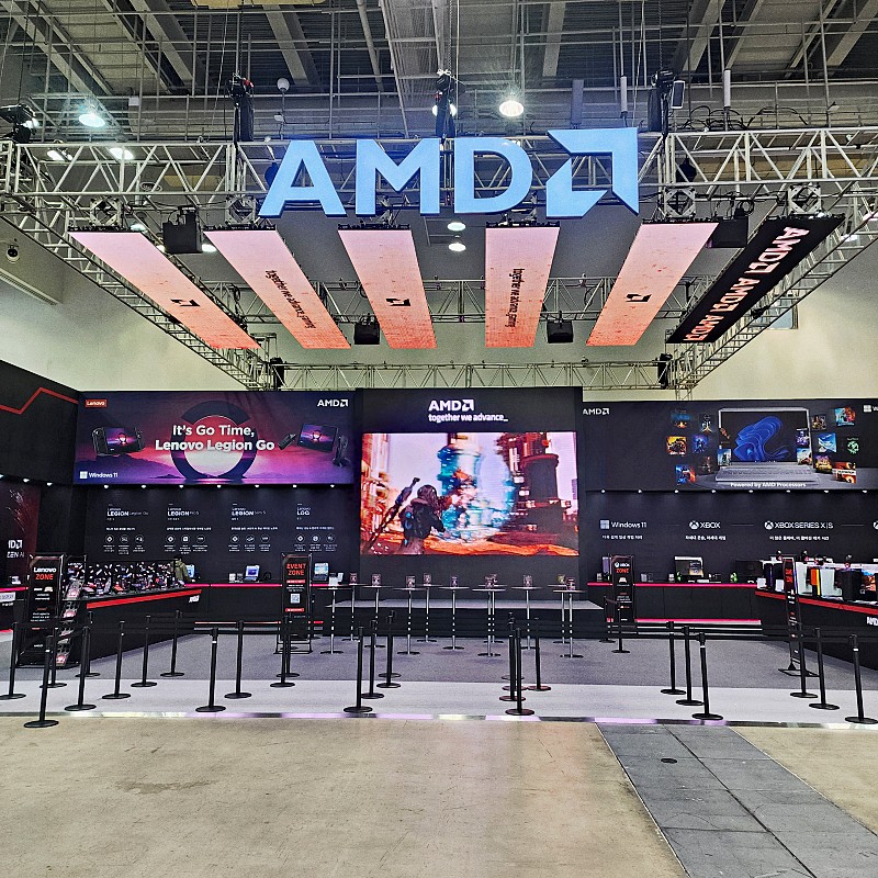 게이밍 PC 시장을 주도하며 동시에 유일하게 인텔과 비교되는 AMD는 지스타 2023에서 단독부스로 참관객을 맞는 전략을 편다. 경쟁사가 인벤을 통해 간접 노출하는 전략을 편 것과 달리 전면에 나서 시장과의 소통에 적극적인 자세를 취했다. 유일한 단점이라면 위치가 다소 불리한 2관에 있다는 것. 그 덕에 관람이라는 측면에서는 다소 여유를 가질 수 있었다는 평이다.