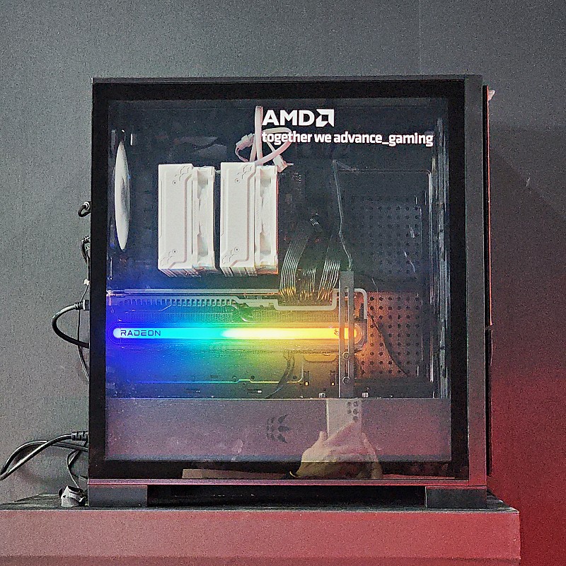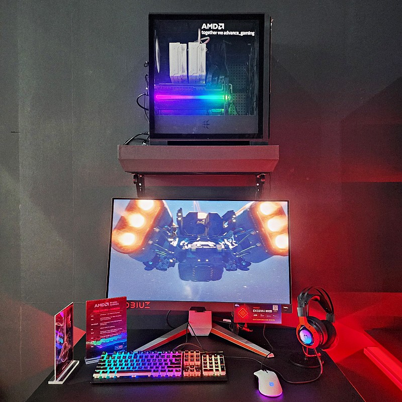 주력 하드웨어인 라이젠 R7 7800X3D 시피유를 주축으로 자사 RX7000 라데온 그래픽카드 그리고 애즈락, 에이수스, 기가바이트 등의 제조사 메인보드, 케이스는 마이크로닉스를 비롯해 잘만 등의 제조사의 협조를 구해 완성한 PC를 현장에 설치해 체험할 수 있게 했다. 이외에도 대원 CTS가 공급하는 마이크론과 서린씨앤아이가 공급하는 써멀라이트, 지스킬 메모리 등이 사용됐다.