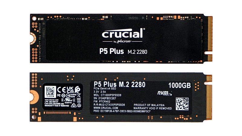 NVMe SSD에서 마이크론은 시장에서 상품성을 인정받은 NVMe 규격 기반 SSD 크루셜 P5 제품을 업그레이드한 PLUS 모델로 더욱 입지를 다졌다. 2280 규격 기반 NVMe 제품으로 최대 5년간 품질을 보증한다. 용량은 500GB, 1TB, 2TB로 3가지인데, 제조사는 이번 제품에 남다른 자신감을 드러냈다. 그만큼 완성도를 높였다. 결정적으로 자체 컨트롤러를 사용한 첫 제품이다.