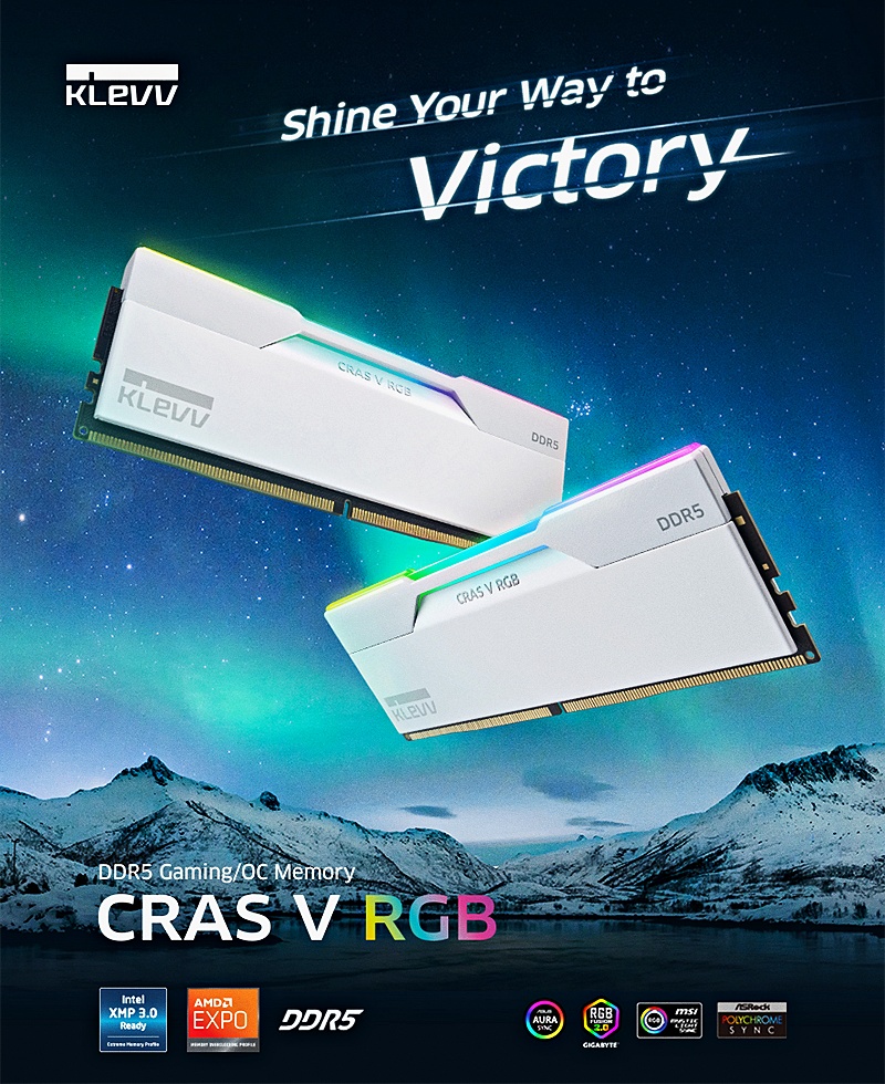 서린씨앤아이는 자사 유통 에센코어 클레브 크라스 V RGB 시리즈에 신규 컬러 브릴리언트 화이트(Brilliant White)를 추가했다고 밝혔다. 편의상 화이트로 표기되어 출시되며, 동작 클럭은 6,000MHz(PC5-48000) CL30 모델과 6,400MHz(PC5-51200) CL32 모델에 용량 16GB 2개가 하나의 패키지로 이루어진 32GB 듀얼 킷이다.