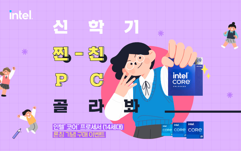 인텔 정품 프로세서 유통 3사(코잇, 인텍앤컴퍼니, 피씨디렉트)가 공동으로 신학기 시즌 맞기 프로모션 ‘신학기 찐친 PC 골라봐’ 를 진행한다. 행사 기간은 내달 26일 까지다.