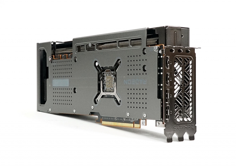 사파이어는 라데온 그래픽카드를 엄청나게 많이 만들어왔고, 이는 완성도로 드러난다. 웨이브 & V핀 설계(공기 유입 시 마찰 줄여 소음 감소, GPU 주변 공기 흐름 가속화), 냉간 압연 강철 프레임(백플레이트와 덮개 구조 및 PCB 측면 보호), 팬 제어 보호 시스템, High TG 구리 PCB(14레이어 2온스 구리 탑재로 안정성 높임) , 퓨즈 보호(외부 PCI-E 전원 커넥터에 기능 내장), 초고성능 전도성 폴리머 알루미늄 콘덴서, 듀얼 바이오스 등의 화려한 기능을 망라하고 있다. 그래픽카드 포트는 HDMI 2.1 두 개, DP 2.1 두 개다. 7680x4320 해상도에 최대 4개의 디스플레이를 사용할 수 있다.