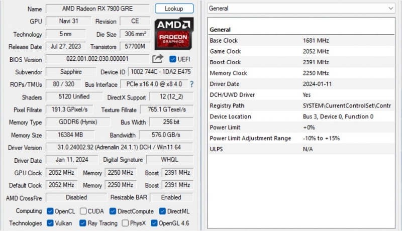 7900 GRE 니트로+는 현존 사파이어 RX 7900 GRE 카드 중 최상위