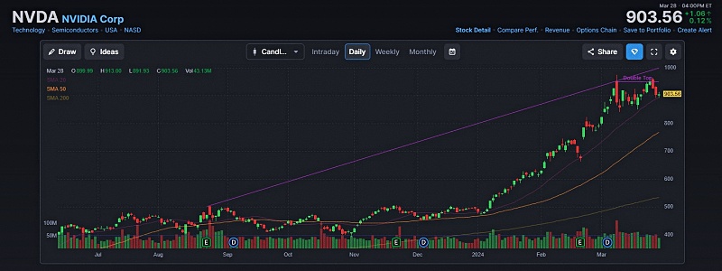 ▲ 살짝 주춤한 엔비디아 주가 흐름. 그래도 인공지능 흐름을 타며 시장을 주도하고 있다