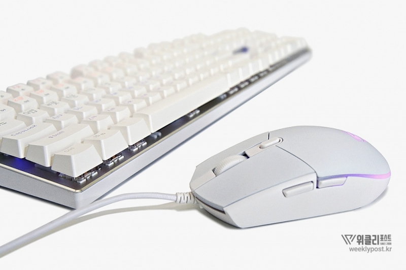 편리하게 사용할 수 있는 앞/뒤 버튼과 800~2400까지 4단계로 조절되는 DPI 조절 버튼까지 필요한 건 모두 갖추고 있다. 무선과 조금 더 높은 DPI를 지원했더라면 활용도가 꽤나 높았을 법한데, 이 가격의 기계식 키보드에 무선 마우스를 서비스로 바라는 건 조금은 욕심이지 않을까 싶다.