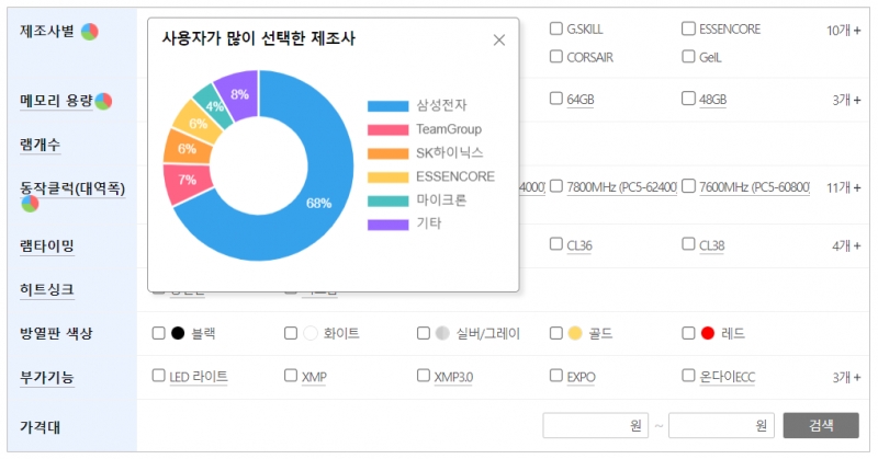 ▲ 쇼핑정보 서비스 다나와가 공개한 메모리 시장 점유율 (24년 05월 08일 기준)