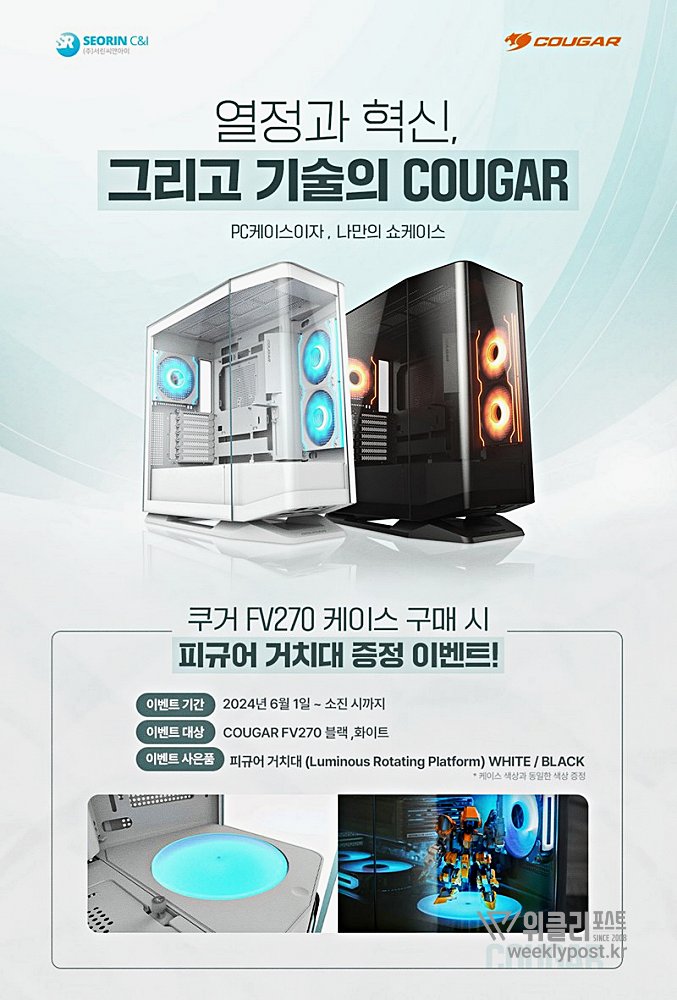 서린씨앤아이가 쿠거 게이밍의 PC케이스 FV270 시리즈 구매 시 사은품 증정 행사를 진행한다.