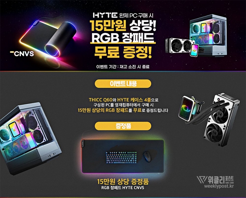컴퓨터 부품 수입 유통 업체 서린씨앤아이가 하이엔드 PC 빌드 업체 YJMOD와 함께 하이트(HYTE) 제품들로 구성된 브랜드 PC 구매자 대상 사은품 증정 행사를 진행한다.