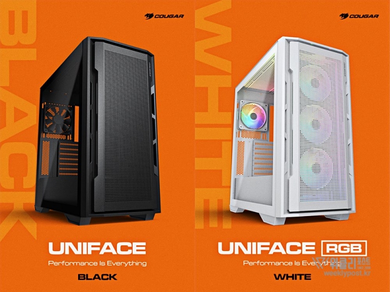 서린씨앤아이는 쿠거 게이밍의 신제품 PC 케이스 유니페이스 시리즈를 정식 출시했다. 이번에 선보인 유니페이스 시리즈는 블랙과 화이트 색상으로 제공되며, 기본 쿨링팬의 RGB LED 지원 여부에 따라 유니페이스 RGB로 구분된다. 총 4종의 모델이 준비되어 있다.