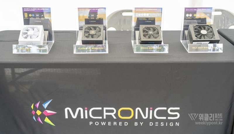 마이크로닉스는 이번 행사에서 다양한 제품을 선보였다. 특히 몇 가지 제품에 대한 기대감을 나타냈다. "케이스, 파워, 쿨러, 게이밍 기어 등을 전시합니다. 케이스는 '우퍼 시그니처'에 많은 기대를 하고 있습니다. PC에 크게 관심이 없더라도 일단 보면 예쁩니다. 색상도 메리골드 오렌지, 대니쉬 블루, 팝핀 레드 등 감각적입니다. 또한, 겜디아스의 '아우라 GC4'처럼 전면에 호두나무 패널을 사용한 케이스도 좋은 반응을 얻을 것이라 생각합니다."