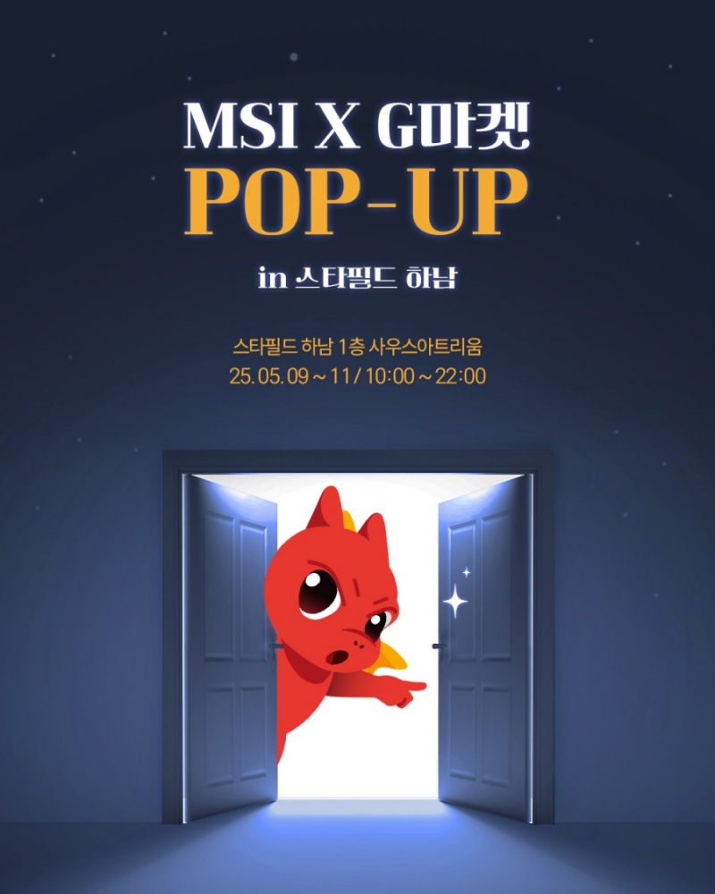 MSI코리아가 G마켓과 협업해 5월 9일부터 11일까지 스타필드 하남 1층 사우스아트리움에서 팝업스토어를 운영한다. 이번 행사에서는 최신 지포스 RTX 50 시리즈 및 인텔 애로우레이크 기반 노트북을 전시하고 다양한 현장 이벤트와 특별 할인 혜택을 제공한다.