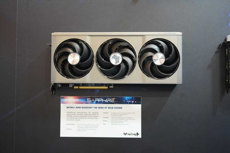 사파이어를 대표하는 모델은 단연 ‘니트로플러스 라데온 RX9070 XT 16GB’ 모델이다. 다른 제조사의 사정도 비슷하지만 9070 모델은 요즘 없어서 못 판다. 우호적인 시장 분위기 속에 다음 달이면 RX9060 모델이 출시된다. 부스트 클럭 등 상세 스펙이 내부적으로는 사실상 확정되었고, 곧 공개될 예정이다.