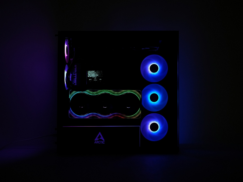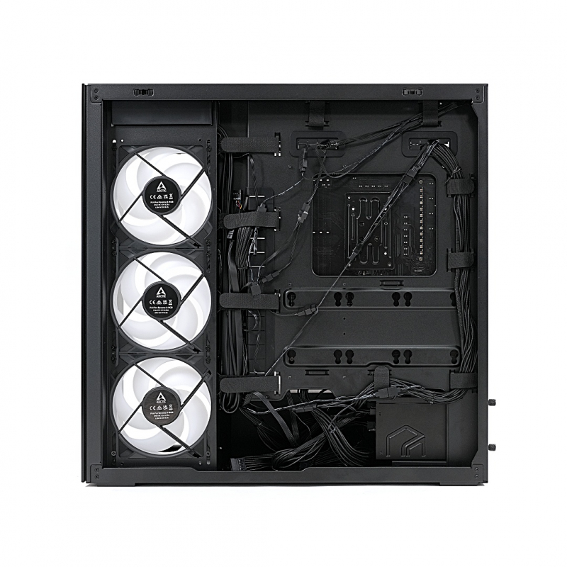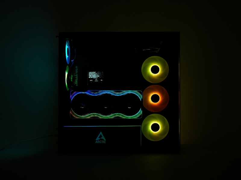 단순히 몸만 좋은 게 아니다. 화려하다. 파워 서플라이 커버에 아틱 로고가 새겨져 있는데, 이 부분에 RGB가 적용된다. 그리고 RGB는 PST(PWM Share Technology)를 통해 연결된 모든 팬을 동시에 제어할 수 있다. 즉, 파워 서플라이 커버와 쿨링팬이 일사불란하게 번쩍번쩍 빛을 내는 것이다. 정갈한 케이스도 좋지만, 이왕 화려하기로 결정했다면 제대로 화려해야 한다. 그런 점에서는 합격이다.