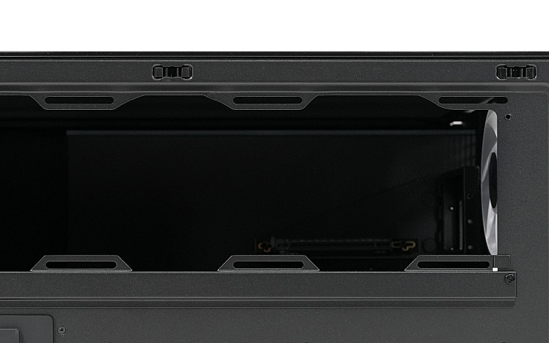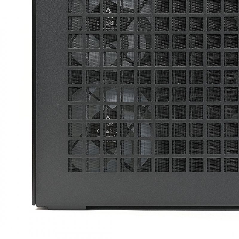 측면에 달린 쿨링팬 뒤에는 사이드 메쉬 패널이 있다. 사이드 패널이 아니라 사이드 ‘메쉬’ 패널이다. 커다란 정사각형 무늬 안에 시원한 타공 구조가 더해져 외부의 차가운 바람을 빠르게 흡입한다. 메쉬 홀 크기만 보자면 전면 메쉬 패널 케이스와도 크게 차이가 없을 정도다.