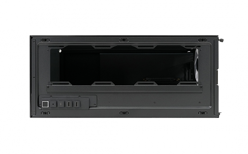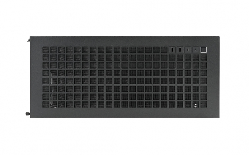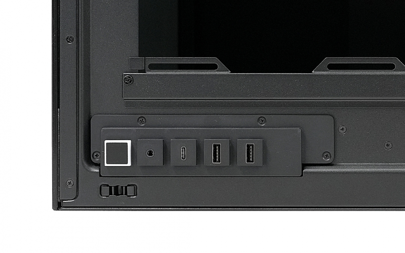 상단 I/O 패널은 USB 3.2 Gen1 2개, USB 3.2 Gen2 Type-C 1개, 3.5mm 오디오 잭, 전원 버튼으로 구성된다. 무성의하게 대충 공간 구분해 놓고 일렬로 쭉 밀어 넣은 게 아니라, 네모반듯한 직사각형 안에 연결부가 하나씩 들어가 있다. 보고 있으면 기분이 좋다. 마치 각이 딱 잡혀 깨끗하게 정리된 관물대를 보는 것처럼.