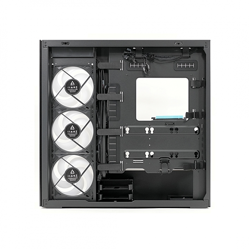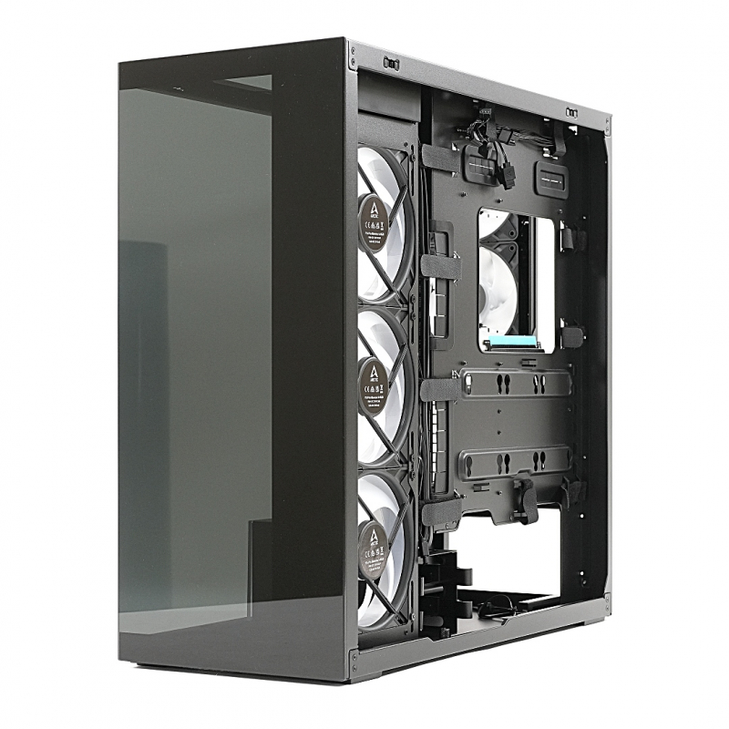 추가로 여기에 120mm/140mm 팬 호환을 위한 모듈식 분리형 팬 브래킷도 포함된다. 140mm를 세 개 더하면? 420mm. 덕분에 앞서 언급한 대로 420mm 라디에이터를 두 개 달 수 있다. 상단, 측면. 고성능 쿨링 시스템을 구성할 때는 이만큼 반가운 게 없다. 아무래도 360mm 라디에이터보다는 성능이 좋은 편이니까.